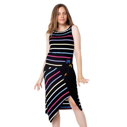 Mamatayoe Damen Regenbogen Kleid, Gestreift & Schwarz, Large Report This