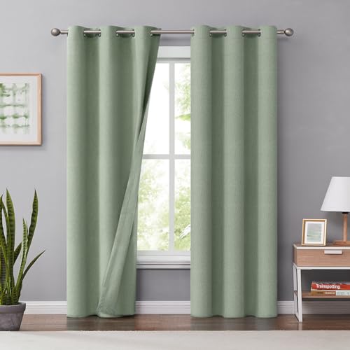 Melodieux Leinengrüne Verdunkelungsvorhänge 160 cm Länge für Schlafzimmer, Wohnzimmer, Verdunkelung, wärmeisoliert, Bauernhaus, Jute, Ösenvorhänge, 107 x 160 cm, 2 Paneele